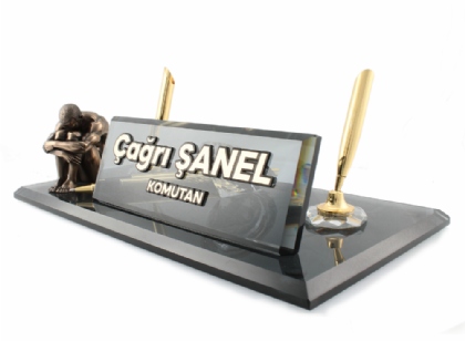 İsimliğin zemin camında masanızın üzerini sürtünüp çizmemesi için altında dörtadet silikon papuç bulunmaktadır.